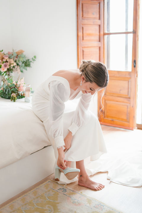 Marta, radiante en su vestido de Jordi Dalmau Costura, deslumbró con un look que combinaba sofisticación y delicadeza. Cada detalle de su atuendo fue pensado con cuidado, desde su peinado hasta el maquillaje realizado por Andrea Sagospe, que resaltó su belleza natural. Los zapatos de Emilio Badiola completaron su look, aportando ese toque de distinción que toda novia desea en su día especial.