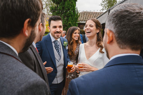 Octubre les regaló a María y Javi un día nublado, de esos que envuelven todo en una luz suave y mágica. La atmósfera era perfecta para celebrar una boda íntima y emotiva en La Quinta de Illescas, un espacio con mucho encanto donde se celebraron tanto la ceremonia eclesiástica como la posterior fiesta.